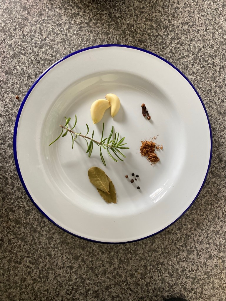 The recipe says to marinate for at least 8 hours. Ha! Double that. At 9am yesterday I was smothering my meat in olive oil, cinnamon, cloves, rosemary, garlic and bay. He’s been happily soaking in all those flavours for the last 30 hours!